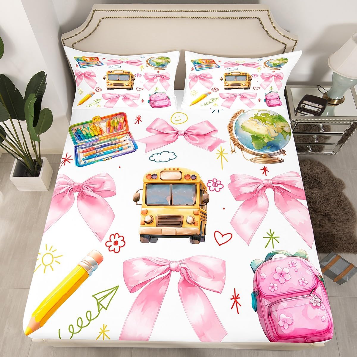 The Modern Fitted Sheet Set Pattern Bedding Set,Simply Decorating Your Rooms You Want,Bringing You Fresh Feel for Year Round Use. Made From Polyester Microfiber Size Information: Twin Size: 2Pcs Fitted Sheet Set:1 Fitted Sheet 39"Wx75"Lx16"H(99x190x41cm), 1 Pillowcase 20"x30"(51X75cm). Full Size: 3Pcs Fitted Sheet Set:1 Fitted Sheet 54"Wx75"Lx16"H(137x191x41cm), 2 Pillowcase 20"x30"(51x75cm). Queen Size: 3Pcs Fitted Sheet Set:1 Fitted Sheet 60"Wx80"Lx16"H(152x203x41cm), 2 Pillowcase 20"x30"(51x75cm). : Personalize Your Bedroom Vibrant prints and thoughtfully curated designs create a personalized bedroom retreat, supporting restful sleep in comfort With elasticity all around, this fitted sheet can firmly lock onto the mattress, making it suitable for various sleeping positions. Its all round package design ensures a smooth and flat surface. Coordinating envelope pillowcase that is easy to replace, saving time and effort, while maintaining the overall aesthetic appeal. : Washing Instructions Machine Wash Separately In Cold Water,Hang Dry,Do Not Bleach. : Occasion Ideal for bedroom, this ultra-soft fitted sheet provides exceptional comfort for everyone. A versatile essential for daily use, guest rooms, or as a spare set for the entire family.