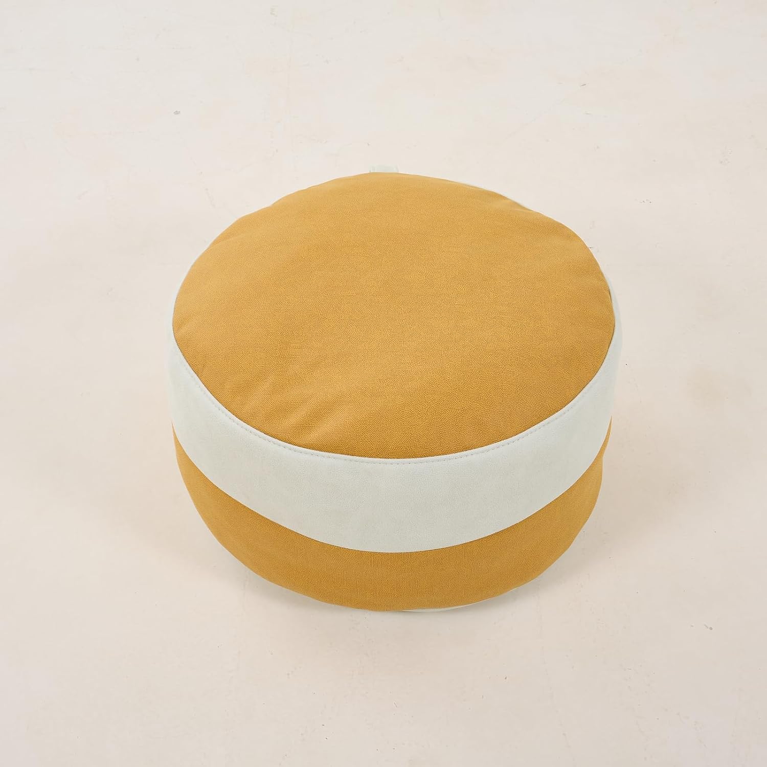 Specification:Material:tech fabricColor:White and YellowSize: 20.9"D x 20.9"W x 11.8"HPackage Included:1 x Pouf Ottoman CoverFeatures:1. PREMIUM CRAFTSMANSHIP WITH TAILORED DESIGN & COLOUR CONTRAST:Boasting expert stitching, subtle yellow and white piping, and a textured finish, this pouf cover offers a tailored, custom-made feel. The colour contrast and quality craftsmanship add understated elegance to your living room, blending seamlessly with sophisticated home decor.2.ECO-FRIENDLY DURABLE TECH FABRIC WITH DISCREET ZIPPER:Crafted from high-quality eco-friendly recyclable tech fabric, it’s tough, durable, and built to withstand everyday use. The discreet under-seat zipper is hidden by fabric folds, preventing metal scratching floors while maintaining a sleek, uncluttered look.3.COMPACT SIZE 20.9”(53cm) DIA X 11.8”(30cm) HIGH: FOLDABLE FOR STORAGE:Measuring 20.9”(53cm) in diameter and 11.8”(30cm) high, it’s lightweight and easily moved. When not in use, it folds flat for compact storage in drawers, boxes, or cupboards—perfect for small UK homes. Delivers lasting comfort while withstanding daily wear and tear.4.UNSTUFFED STORAGE DESIGN: ORGANISES CLUTTER EFFORTLESSLY:This is only the cover (no filling included) – simply stuff it with stuffed animals, extra linens, blankets, kids’ jackets, or other small items. It transforms into a lightweight storage solution, keeping your home tidy without compromising on style or space.5.MULTI-PURPOSE FASHION POUF: INDOOR OUTDOOR VERSATILITY:A stylish addition to any space, it doubles as a comfortable footstool, extra seating, coffee table, or decorative accent. Easily portable for outdoor picnics, patio parties, or garden gatherings. Adds personality to living rooms, bedrooms, kids’ rooms, or patios—blending fashion with functionality.Warm tips:1.Due to manual measurement, the size may have an error of 0.1 - 0.3 cm2.Due to different monitors, the color may be different from the actual one, please refer to the actual product3.If you have any questions, please feel free to contact us. We will try our best to solve the problem within 24 hours