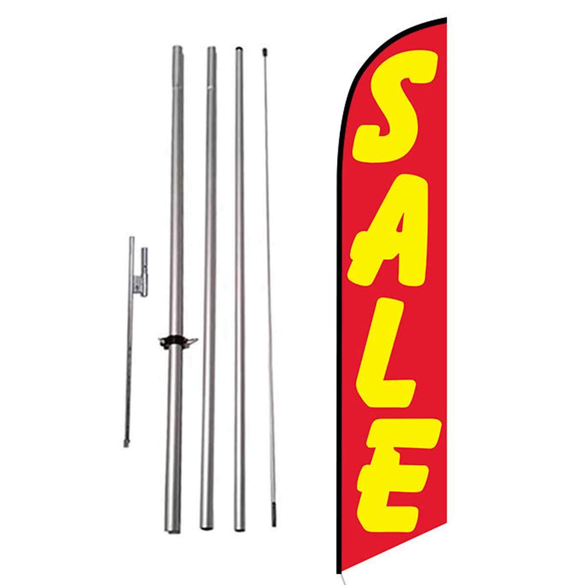 When you purchase this item, you will get 1 flag, 1 3 pc pole kit, and 1 Ground Spike. This is everything you will need to have a complete kit. We do recommend that you purchase a spinnerfly. It will allow your flag to easily twirl with the wind. This feather banner flag can grab attention from customers from a distance. They stand 16ft tall with the pole kit and hardware. They can be placed in grassy areas, walls, roofs, car tires, and a variety of other places. For our full stock, please visit our site. We have a huge variety of Feather Banner Flags that are not listed on Amazon but are on our site. We also provide a huge variety of custom flags that will suite all your needs. Please visit our site for more information or contact us through Amazon. Thank you for visiting this page.